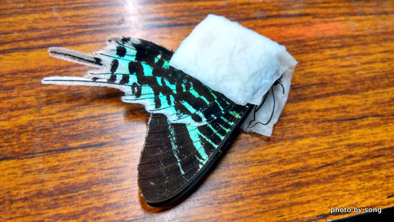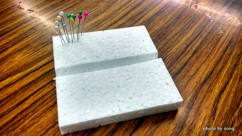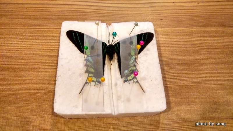 大頭針與保麗龍的組合,是製作蝴蝶標本的標準配備